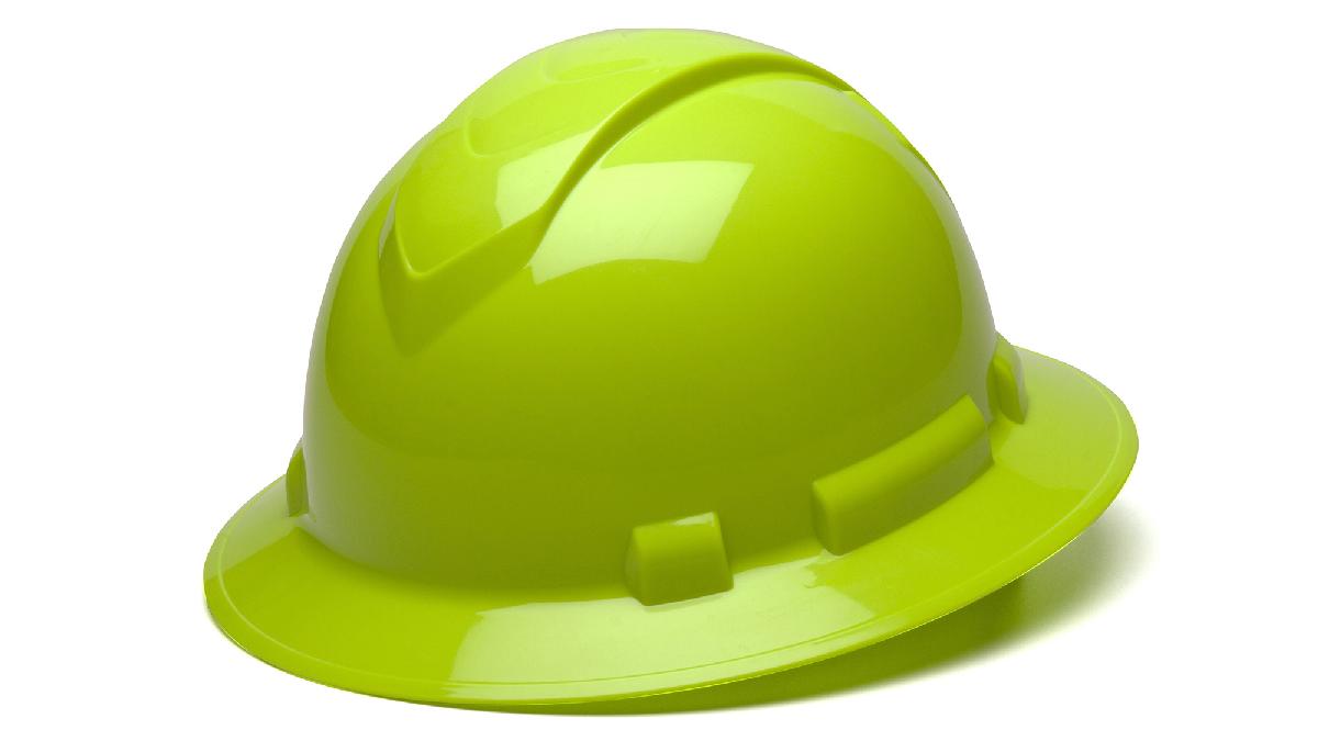 New Employee Hard Hat Hi Vis Lime Full Brim Style 4-Point Standard Ratchet