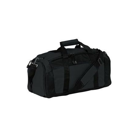 From warm-up to cool-down, this budget-friendly bag holds everything you need to work out. | 600 denier polyester Front pocket and side zippered pocket Separate pouch for pool or gym Adjustable, detachable padded shoulder strap Dimensions: 10.75'h x 20.75'w x 9.5'd; Approx. 2,119 cubic inches Note: Bags not intended for use by children 12 and under. Includes a California Prop 65 and social responsibility hangtag .