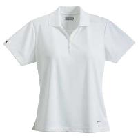 Classic flat knit collar with long, slimming two-button placket (women's). Contrast 'X' shaped bartacks at slits and taping on inside of slits. 100% Micro Polyester Double Pique with In-House Wicking. 145 g/m2 (7 oz/linear yd)